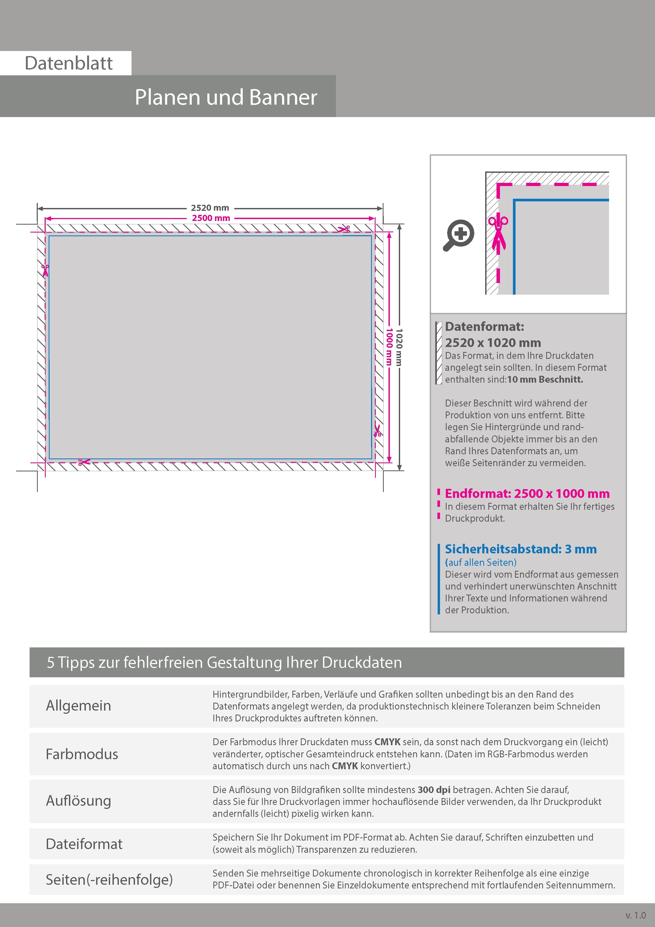 Hochwertige Mesh-Plane 250 x 100 cm, 4/0-farbig bedruckt, plano