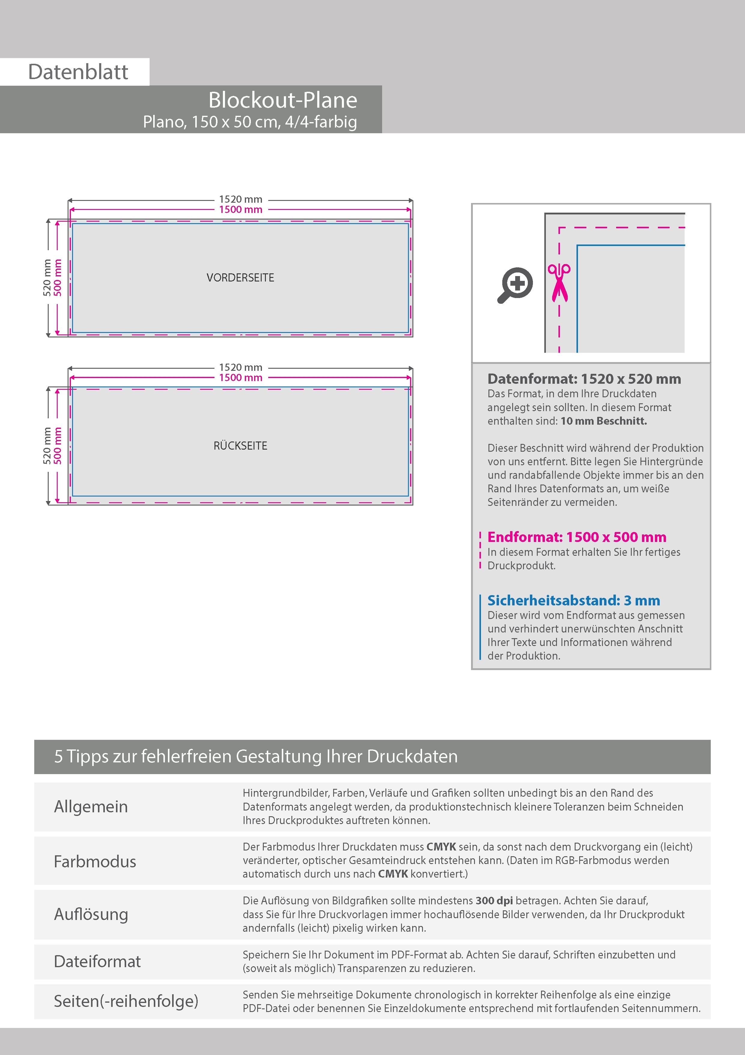 Hochwertige Blockout-Plane 150 x 50 cm, 4/4-farbig bedruckt, plano
