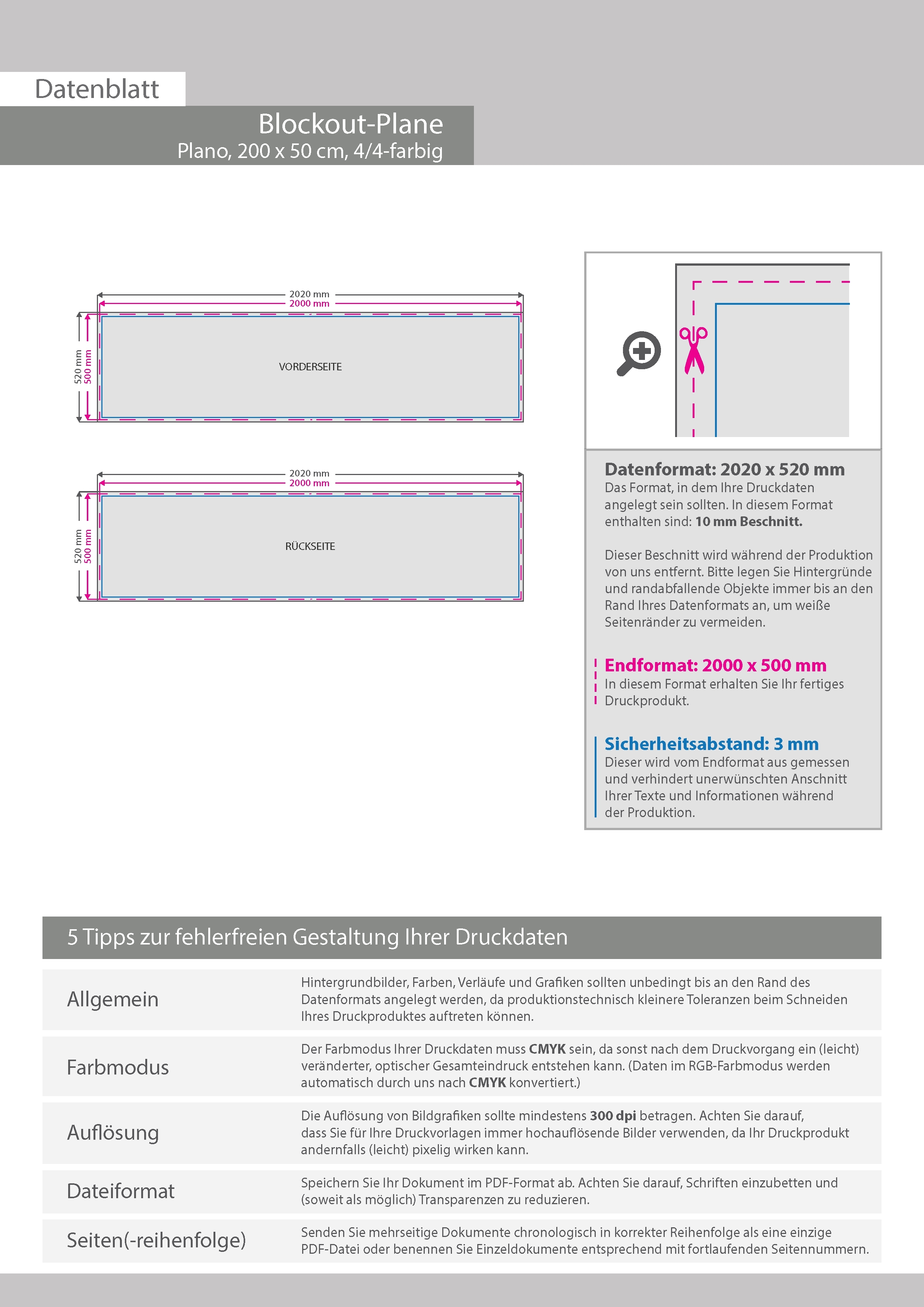 Hochwertige Blockout-Plane 200 x 50 cm, 4/4-farbig bedruckt, plano