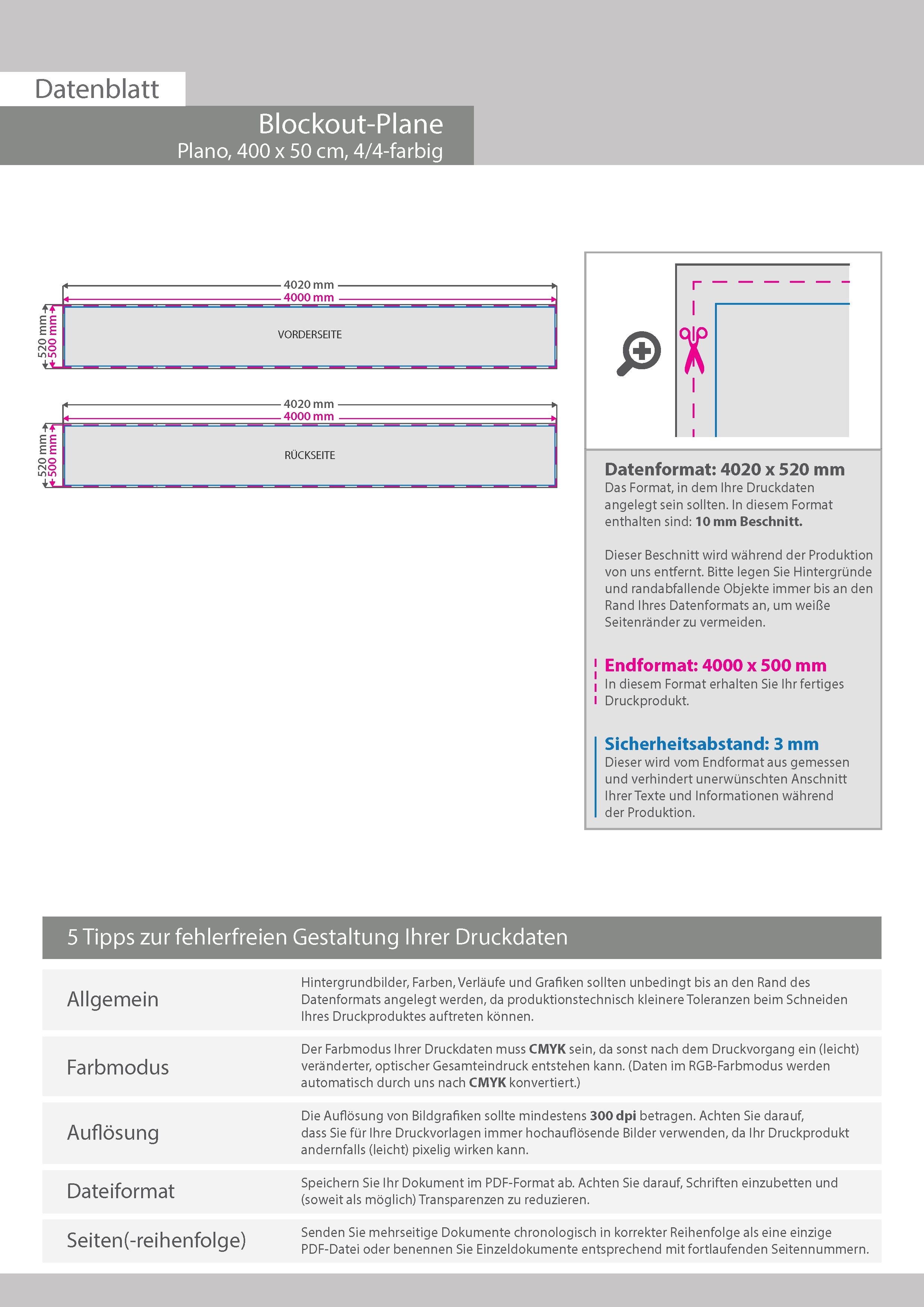 Hochwertige Blockout-Plane 400 x 50 cm, 4/4-farbig bedruckt, plano