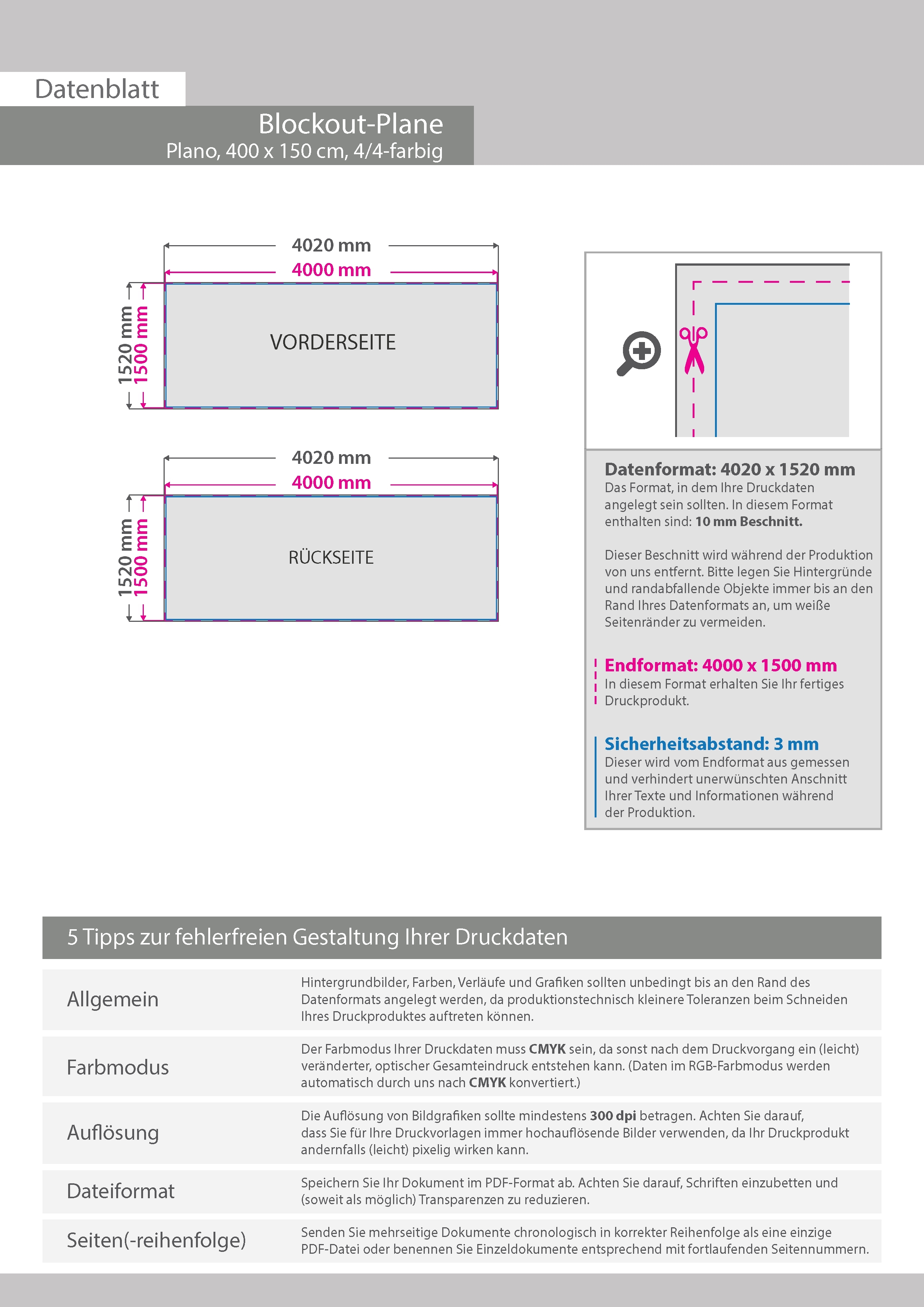 Hochwertige Blockout-Plane 400 x 150 cm, 4/4-farbig bedruckt, plano