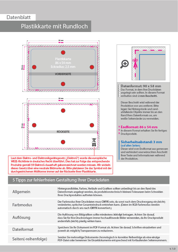 ECO-PVC Plastikkarte mit Lochung, 4/0 farbig bedruckt auf weißem Hintergrund