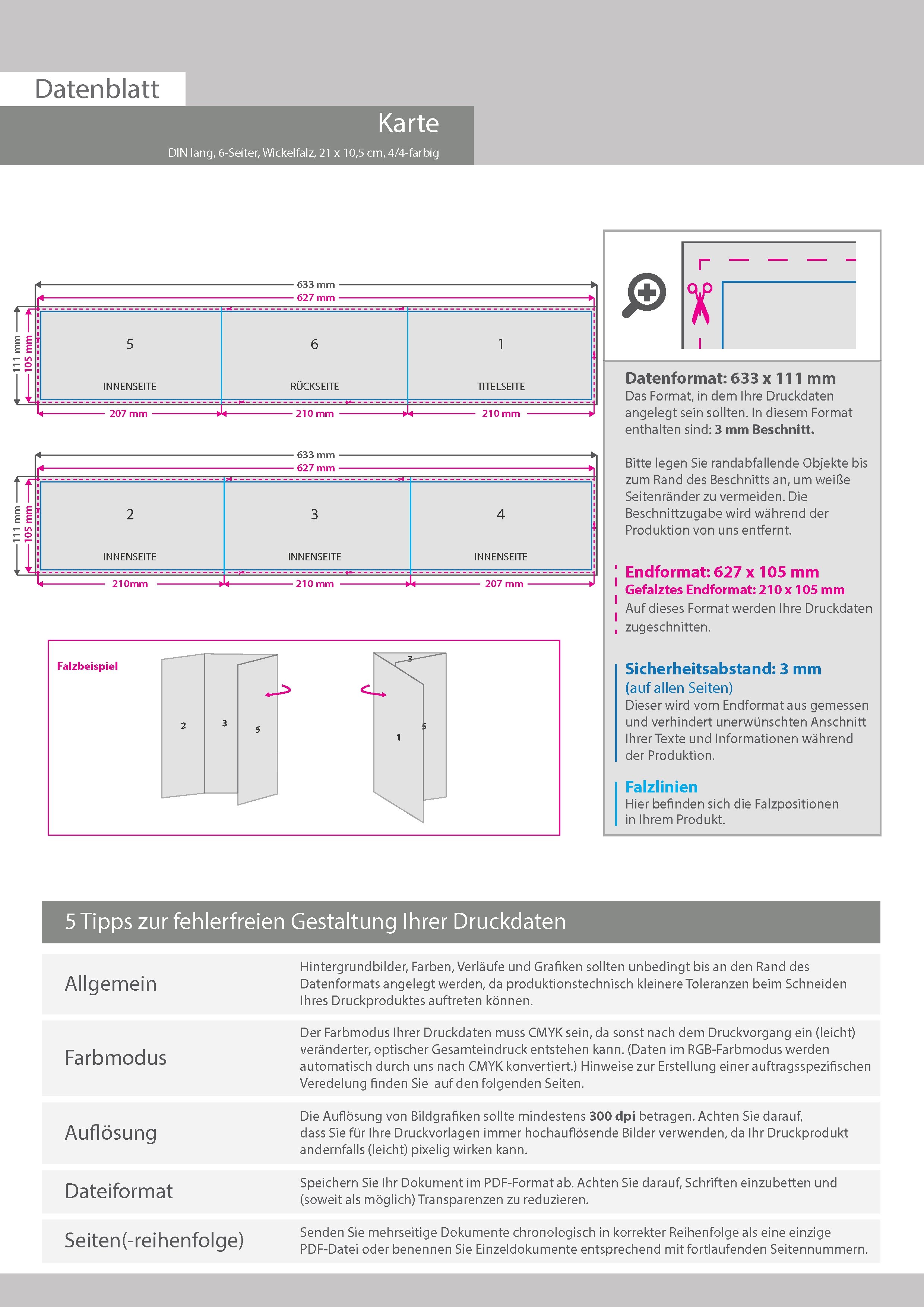 Einladungskarte, gefalzt auf DIN lang quer, vertikaler Wickelfalz, 6-seitig
