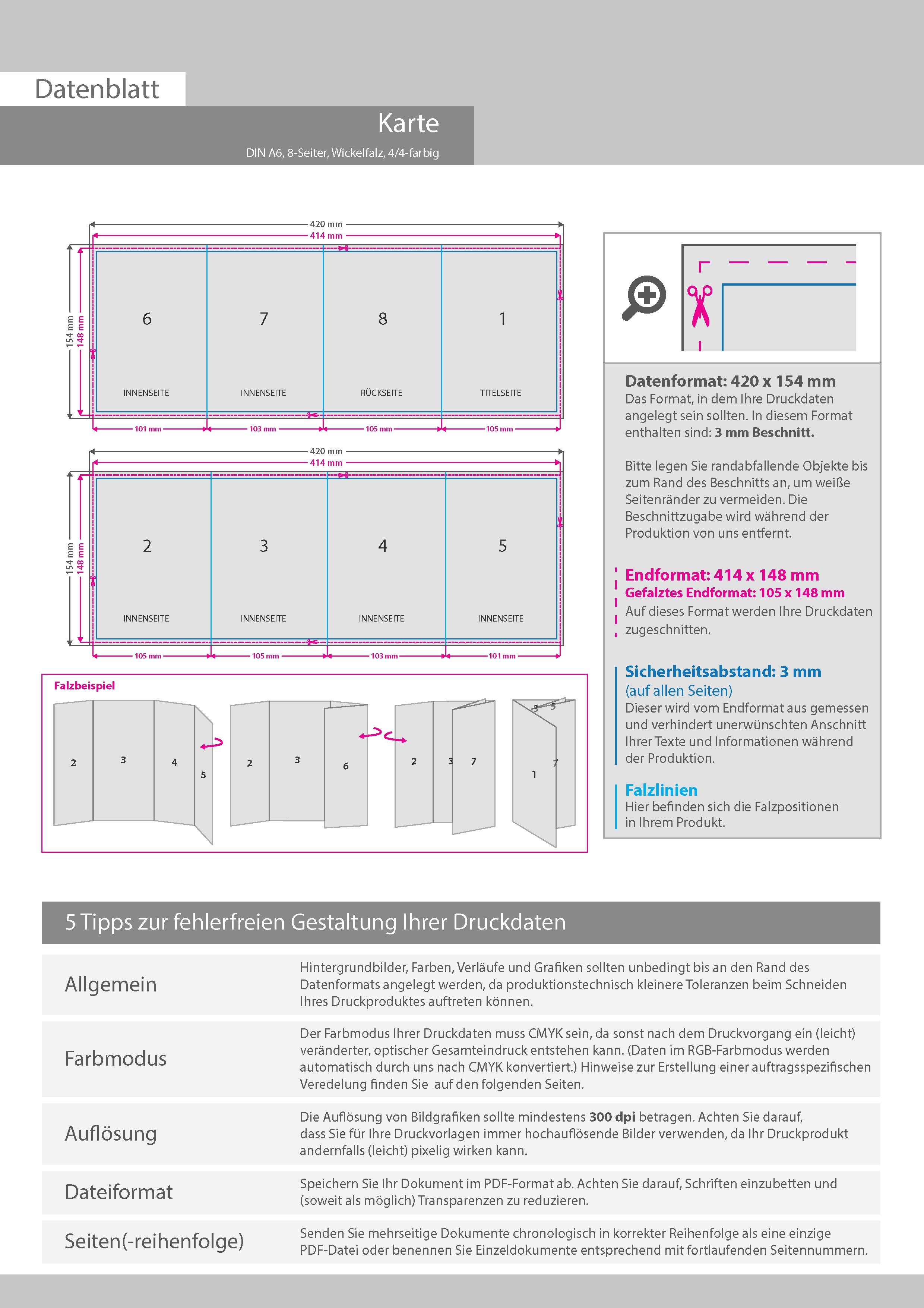 Einladungskarte, gefalzt auf DIN A6, vertikaler Wickelfalz, 8-seitig